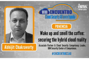 Uno de los ponentes más destacados es Abhijit Chakravorty, Associate Partner & Cloud Security Competency Leader, IBM Security Center of Competence, que participará con un keynote bajo el título Wake up and smell the coffee: securing the hybrid cloud reality. Podrás verlo el próximo 28 de noviembre, de 09.00 a 15.00hs, en el Auditorio Principal de CaixaForum Madrid (Paseo del Prado, 36. Planta -2), en el marco del VIII Encuentro de Cloud Security Alliance España.