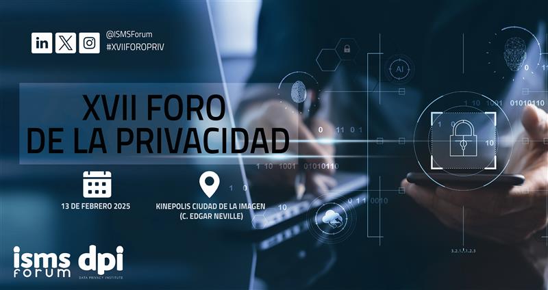ISMS Forum y su grupo de trabajo, el Data Privacy Institute (DPI), organizan su decima séptima edición del Foro de la Privacidad el próximo 13 de febrero de 2025 en Kinépolis Ciudad de la Imagen (C. Edgar Neville, s/n).
