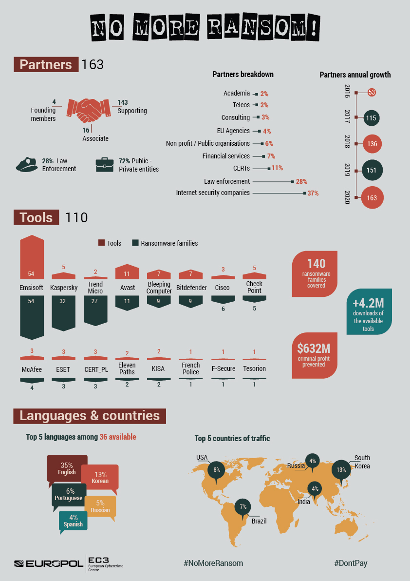 No More Ransom es la primera asociación público-privada de este tipo que apoyo a las víctimas de ransomware que ayuda a recuperar sus datos cifrados sin tener que pagar el importe de rescate a los ciberdelincuentes.