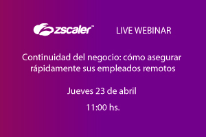 El próximo 23 de abril a las 11:00 hs. Alberto Cita (Sales Engineering Manager Iberia & Italy – Zscaler) impartirá el webinar “Continuidad del negocio: cómo asegurar rápidamente sus empleados remotos” de forma online. Haz clic para informarte.