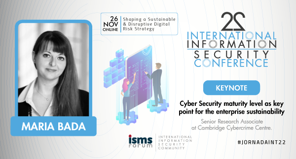 Maria Bada, Senior Research Associate at Cambridge Cybercrime Centre, será una de las ponentes estrella del programa, que dedicará su intervención a hablar sobre el nivel de madurez en ciberseguridad como la clave para la sostenibilidad de la empresa. En su trayectoria profesional, Bada se ha centrado en la investigación relacionada con la ciberseguridad y la ciber-psicología, fomentando la cibercultura responsable en la sociedad. Sus intereses de investigación incluyen los factores humanos en la ciberseguridad y la evaluación de la capacidad de ciberseguridad a nivel nacional.