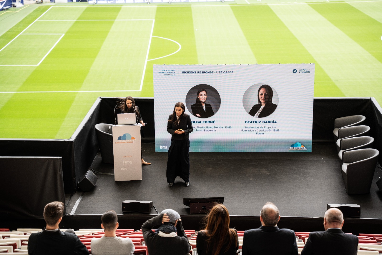 Olga Forné, CISO Global de Abertis y Miembro de la Junta Directiva de ISMS Forum, y Beatriz García, Subdirectora de Proyectos, Formación y Certificación de ISMS Forum, expusieron las entradas que se han diseñado para este nuevo proyecto.