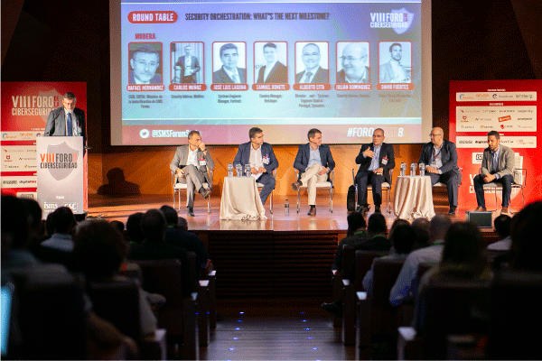 La primera mesa redonda del día contó con la participación de Carlos Muñoz,Security Advisor (McAfee); José Luis Laguna, Systems Engineer Manager (Fortinet); Samuel Bonete, Country Manager (Netskope); Alberto Cita, Director and Systems Engineer Spain & Portugal (Symantec); Julián Domínguez, Security Advisor (Varonis); David Fuertes, Senior Threat Researcher (Palo Alto); y como moderador Rafael Hernández, CISO de CEPSA y miembro de la Junta Directiva de ISMS Forum.