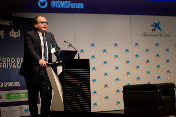 Prokopios Drogkaris durante su ponencia en el XII Foro de la Privacidad.