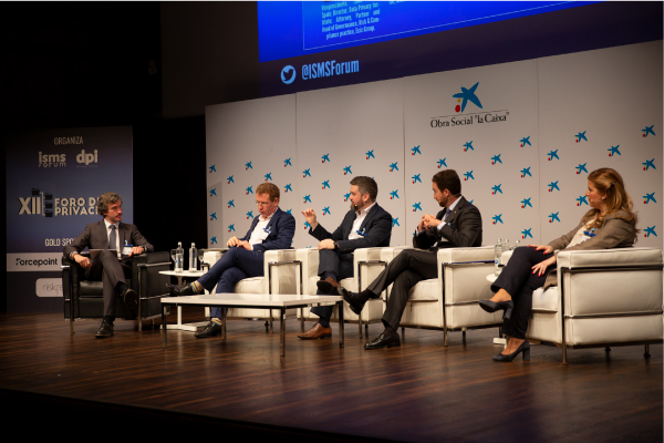 La primera mesa redonda del día “Data Protection Maturity” contó con la participación de Antonio Muñoz, Data Protection Technical Director, Global DPO Office (Telefónica); Galo Claverie, Privacy Consultant (OneTrust); Gonzalo Salas, Senior Manager IT Legal Advisory (Grupo SIA); Marta Cañas, Data Protection Officer (Iberia); y fue moderada por Carlos A. Saiz, Vicepresidente de ISMS Forum, Director del Data Privacy Institute, y Attorney, Partner and Head of Governnance, Risk & Compliance practice (Ecix Group).