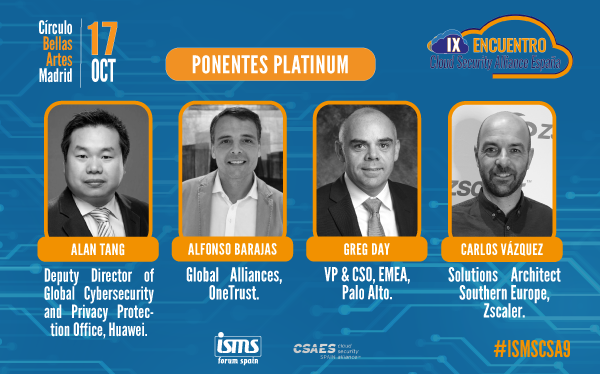 El capítulo español de Cloud Security Alliance (CSA ES) e ISMS Forum celebrarán su Encuentro Anual de profesionales de la seguridad Cloud, el IX Spanish Cloud Security Alliance Summit, el próximo 17 de octubre en el Círculo de Bellas Artes de Madrid (C/ Alcalá 42, Acceso por C/ Marqués de Casa Riera, 2).