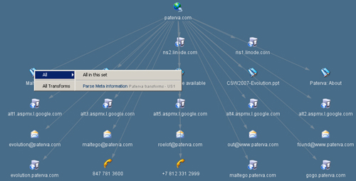 Las herramientas: Aún habiendo detectado la presencia del problema, su concreción y estudio resulta cuanto menos intimidatorio, debido principalmente a la enorme extensión donde buscar las fugas e implantar los filtros necesarios. A la hora de encontrar toda esta información los más rápidos han sido, una vez más, los más interesados. Es por este motivo existen múltiples herramientas y técnicas que permiten a cualquier atacante recopilar de forma fácil y casi automática su preciado botín: la información. Entre esas herramientas hemos elegido una como ejemplo para demostrar la facilidad con la que una aplicación nos permite, entre otras cosas, buscar toda la información existente sobre nuestra empresa y que está accesible de forma pública. Para ello tan sólo es necesario comenzar por un nombre de dominio, una página web, una persona o teléfono. La sencillez de manejo y la gran profusión de resultados impresionan desde su primer uso. Para poner a trabajar esta herramienta basta con descargar, de forma gratuita, la versión más adecuada a nuestras necesidades en función del Sistema Operativo que empleemos y arrancarla una vez descomprimida.