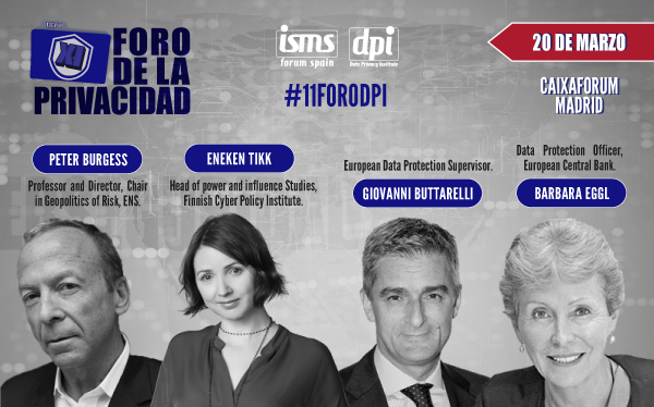 Madrid, 19 de marzo de 2019. ISMS Forum Spain celebrará el XI Foro de la Privacidad el miércoles 20 de marzo de 2019, de 09.00 a 15.00hs, en el Auditorio Principal de CaixaForum Madrid (Paseo del Prado, 36. Planta -2). Más de 350 profesionales del sector se reunirán en este encuentro que contará con máximos expertos, representantes institucionales y empresas tales como Comisión Europea, el Supervisor Europeo de Protección de Datos y la Agencia Española de Protección de Datos.