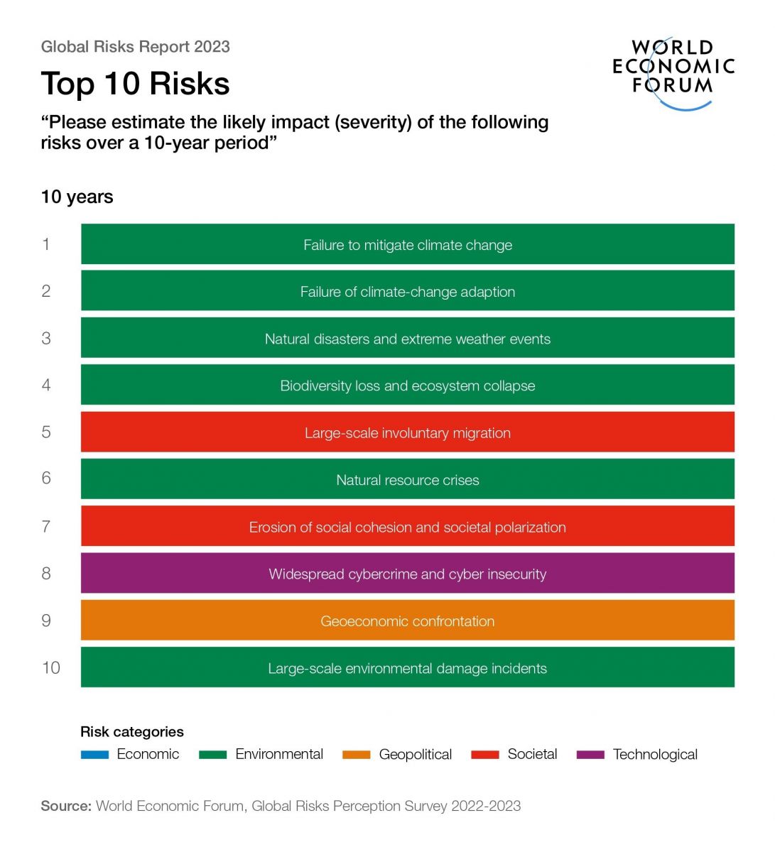 El Informe del Foro Económico Mundial indica que la creciente interrelación de las tecnologías con el funcionamiento crítico de las sociedades expone a la población a ciberamenazas internas directas, incluidas las del funcionamiento de la sociedad.
