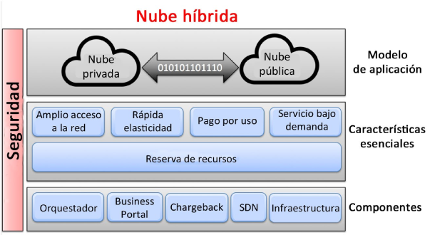 El concepto de nubes híbridas es un modelo de arquitectura que permite el uso de la nube pública con una nube privada. Hoy tenemos nubes públicas de gran capacidad como: