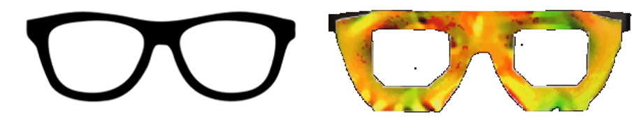 Figura 2. Una montura de gafas (derecha) sobre la que se pega un papel con un patrón cromático específico generado con una impresora (izquierda) calculado empleando técnicas de ML, permite a los autores del artículo académico “Accessorize to a Crime: Real and Stealthy Attacks on State-of-the-Art Face Recognition” manipular las predicciones un sistema de reconocimiento facial de última generación.