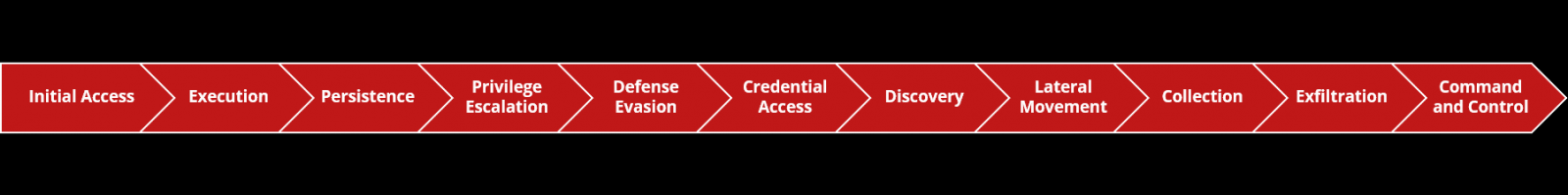 Así mismo, en los últimos cinco años, MITRE ha publicado el ATT&CK Framework [2]** Ampliando las últimas etapas del modelo Kill Chain, este marco de referencia cataloga las tácticas y técnicas de los adversarios basándose en millones de ataques observados. Las figuras de abajo representan las etapas de este marco con algunos “playbooks” de ejemplo.