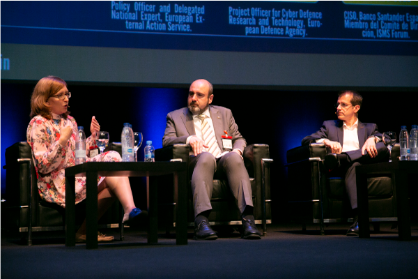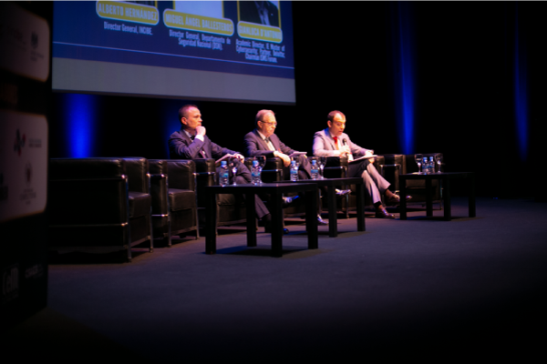 De izquierda a derecha, Alberto Hernández (INCIBE), Miguel Ángel Ballesteros (DSN) y Gianluca D’Antonio (ISMS Forum).