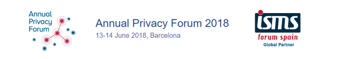 Los próximos días 13 y 14 de junio tendrá lugar el Annual Privacy Forum 2018 en Barcelona, en la Torre Telefónica (Avenida Diagonal 00, Plaza de Ernest Lluch i Martín, 5, 08019). Los miembros de ISMS Forum contarán con una tarifa especial de 270 € que incluye el ticket de cena.